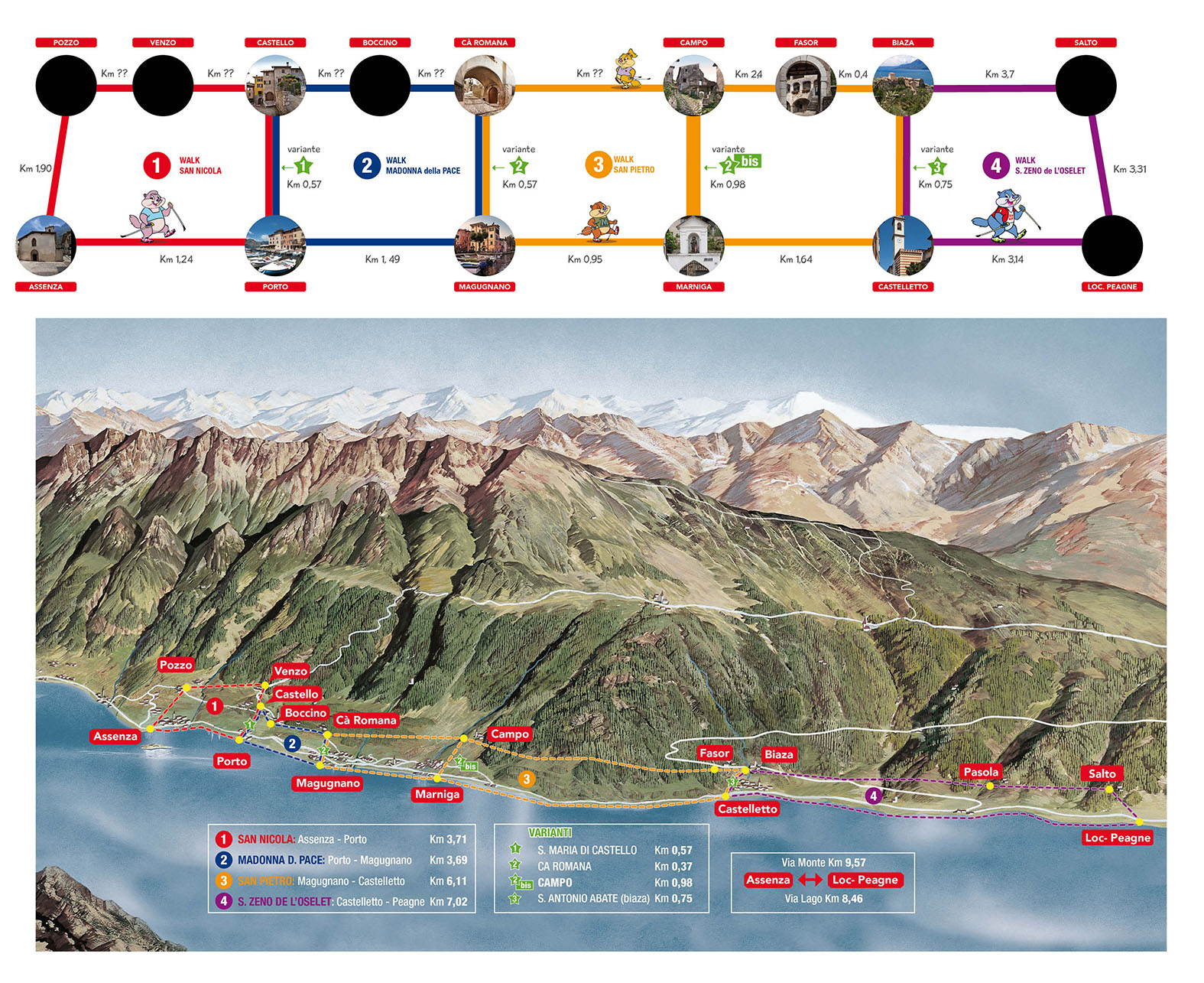 (Tutti con partenza e arrivo tra Assenza e Castelletto, ben segnalati lungo il percorso)